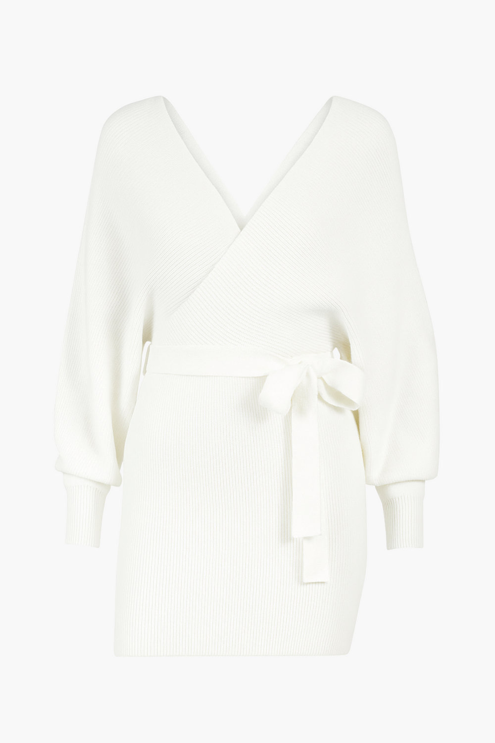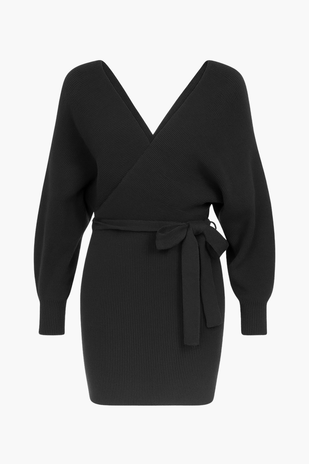 This cozy-chic sweater dress is a fall wardrobe must-have! Long sleeve drop shoulders fall from a v-neckline (and back) into a bodycon mini skirt with tie waist. Made from a stretchy rib knit, this stylish number is as cozy as it gets.