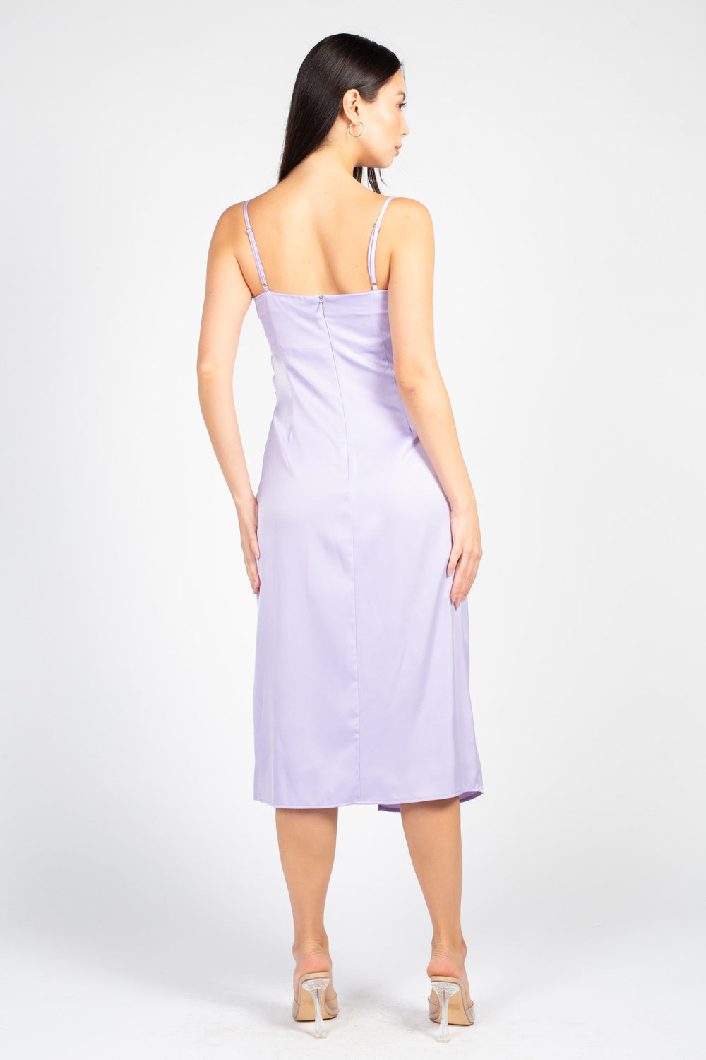 Our best-selling dress is back in more colours than ever! The gorgeous Deanna Satin Midi Slip Dress features adjustable spaghetti straps, a subtle cowl neckline, a ruched bodice and midi length skirt with slit detail. Complete with a hidden back zipper and clasp closure.