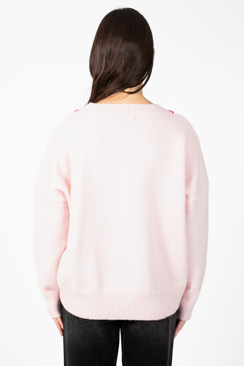 Bring some love into your wardrobe with our Lyla + Luxe Heart Stitch Crew Neck Sweater. The oversize fit and ribbed details make this sweater comfortable and stylish, while the heart graphic outlined in a weave stitch adds a touch of sophistication. Elevate your look with this stunning and cozy piece.